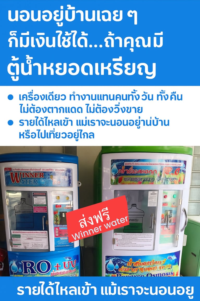 ค้นพบอนาคตของรายได้แบบ Passive Income กับ Winner Water เรานำเสนอเครื่องหยอดเหรียญที่เชื่อถือได้และใช้เทคโนโลยีสูงครบวงจร พร้อมการสนับสนุนที่ครอบคลุมเพื่อการเติบโตทางธุรกิจของคุณ